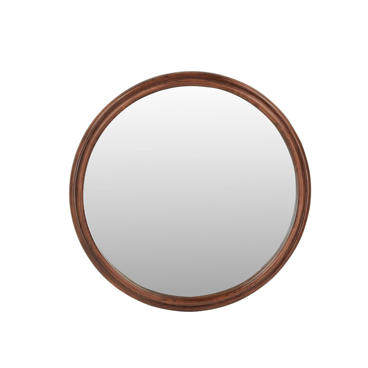 Creating an elegant focal point with its circular design, this round mirror if framed in dark-stained ashwood and featuring a 4mm glass mirror with engineered wood backing, this oversized piece brings depth and sophistication to any space. Complete with pre-installed mounting hooks for easy mounting, it offers both dramatic presence and practical functionality.